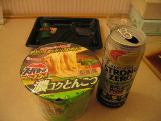 今夜もロング缶4本で、〆のカップ麺です。