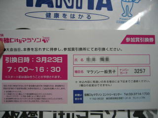 平成26年3月23日 東京都の「2014板橋Cityマラソン大会」のフルマラソンに参加しました。