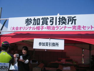 ゴール後、荷物を受け取り、参加賞をいただきます。