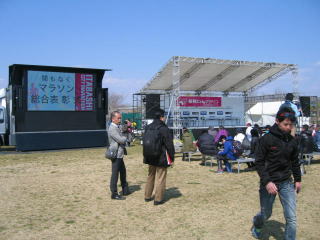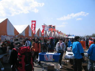 大会会場が見えてきました、お天気は雲ひとつない快晴、風もほとんど感じません。