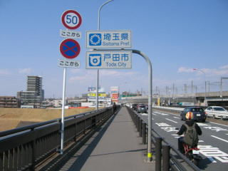ボートレース場ではないかと思います、荒川にかかる戸田橋、国道17号線です。