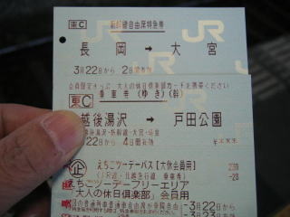パス範囲外の湯沢〜戸田公園の乗車券往復、長岡〜大宮、大宮〜湯沢の特急券も買いました。