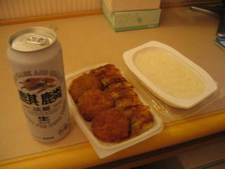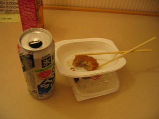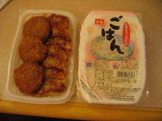 家から持参した残り物の惣菜とチンするご飯、電子レンジがないホテルでは食べられません。