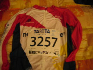 大会オリジナル帽子などは有料ですので、申し込んでいません、タオルのみです。