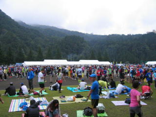 さっさと着替えてナンバーカードを付けてスタートラインンへ付くと9時25分位でした。
