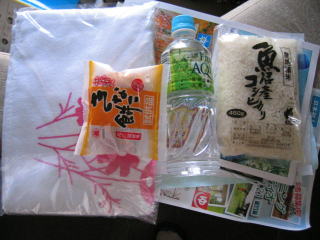 参加賞は魚沼産こしひかり、きなこ餅、タオル、お水などです。