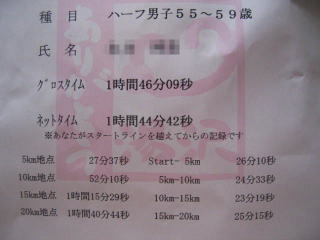 帰ってからWEB練習日記を見て分かったのですが、角上たかさんがハーフ男子55〜59歳で優勝したそうです。