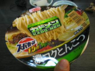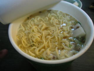 朝は3時半に起きてカップ麺大盛に餅4切れを入れていただきます。