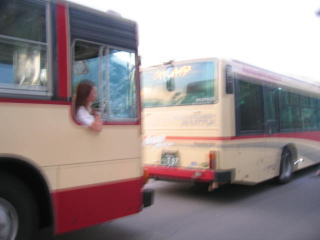 シャトルバス乗り場へ向かう途中のベンチで着替えました。