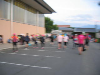 4時20分頃ころ出発、車で小布施中学校へ向かいます。