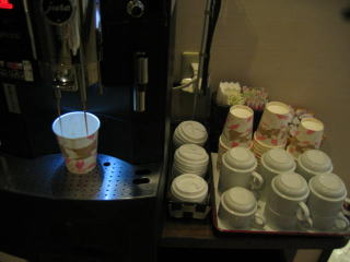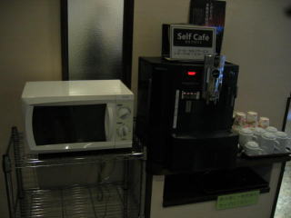 フロント脇に、電子レンジ、セルフカフェがあります。