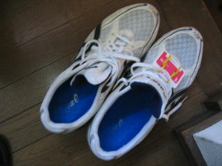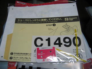 前夜、Tシャツにナンバーカード2枚、シューズに計測チップを付けて準備万端です。