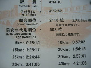 フル97戦目は不甲斐なく終了しました、タイムは4時間34分(ネットは32分52秒)でした。