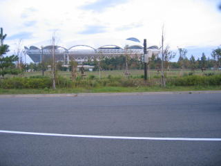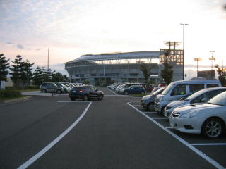 がなるべくデコボコ屋根?壁?のビックスタジアム寄りの位置に駐車しました。