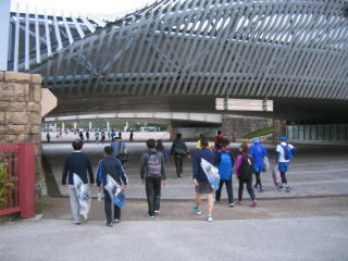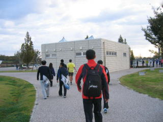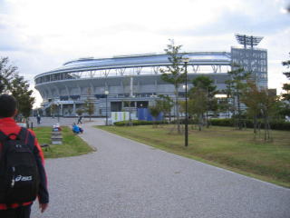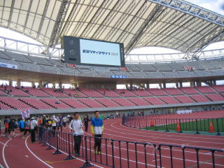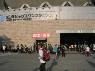 スタートグロックのある「デンカビックスワンスタジアム」までは300mほどでしょうか、みんなの後について進みます。