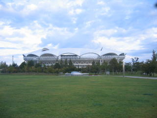 こちらは平らな屋根?壁?の「ハードオフエコスタジアム」、野球場の様です、一度も入ったことはありません。