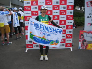 右足裏の潰した水泡が痛いのに、ゴール後の動線が長く荷物受取りまで結構歩きます。