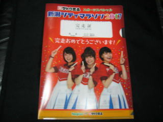 完走証は新潟ご当地アイドル「negicco」さんのクリアファイルと共にいただきました。