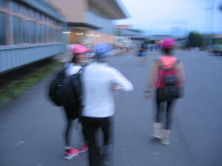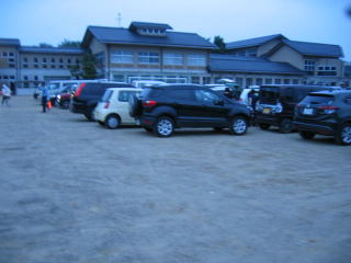 午前4時20分ホテル出発、4時37分頃駐車場の小布施中学校に到着です。
