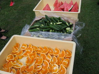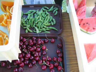 ゴールしてからのおもてなし、今年は甘いあんころ餅やお団子、フルーツゼリーなども加わっていました。