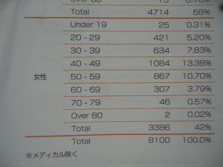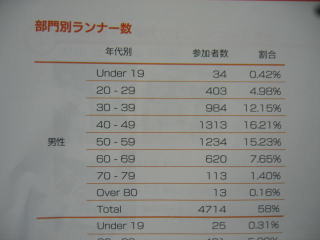 男子は4714人、女子は3386人、女性比率が42%と高いのも特徴、若干昨年よりエントリー数は減っています。