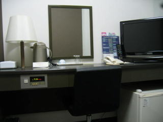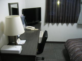 広めの低いベット、冷蔵庫やテレビ、湯沸かしポットなど不満はなく7.700円です。