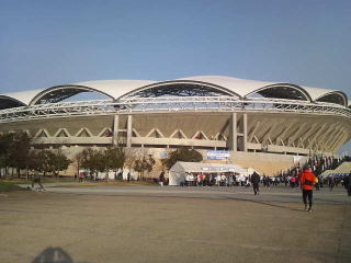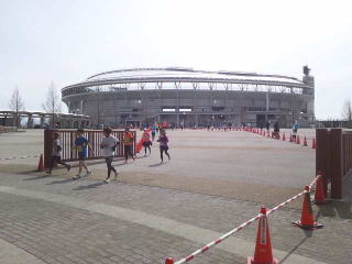 大きな第3Pを横切ってスタジアムへ歩き、太い道路の下をくぐって会場入りです。