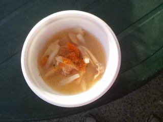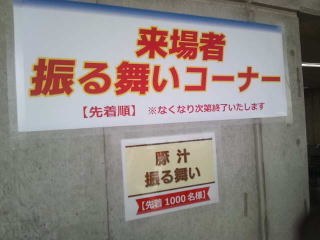 再び入口あたりへ戻りますと「来場者振る舞いコーナー」に気が付き、無料でとん汁をいただきました、濃いみそ味、暖かく助かりました。