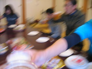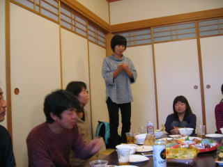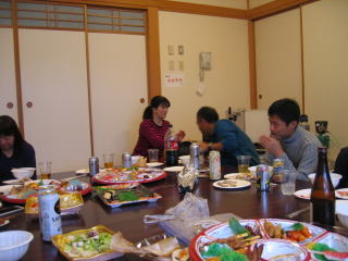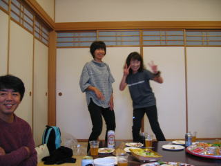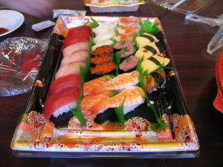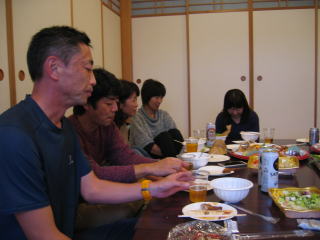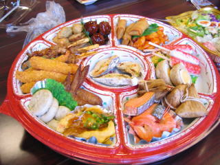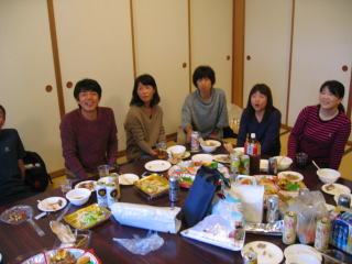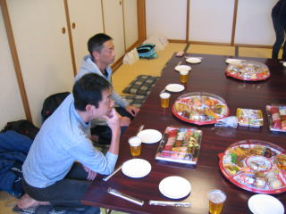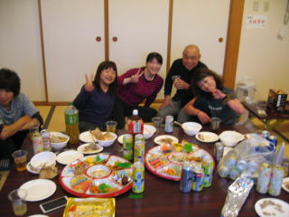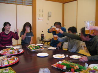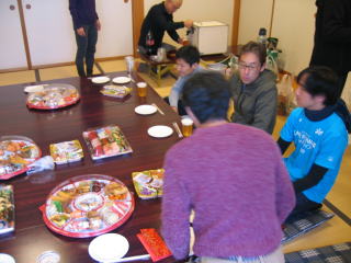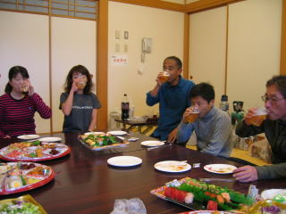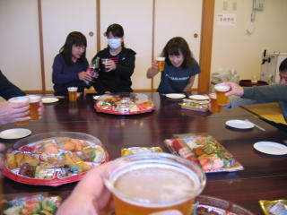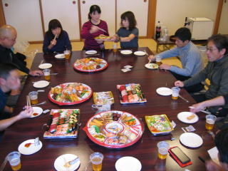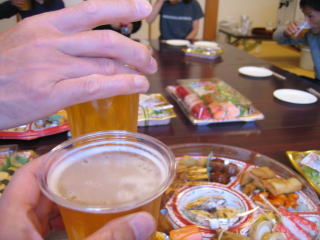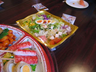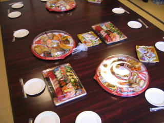 オードブル、生寿司、サラダ、アルコール類は近くのスーパーで調達の様です。