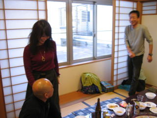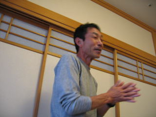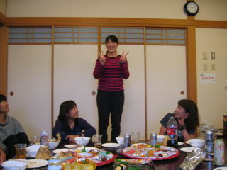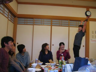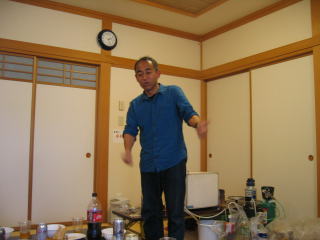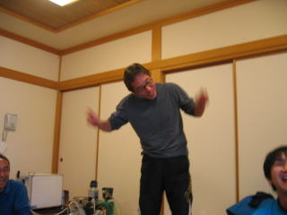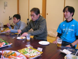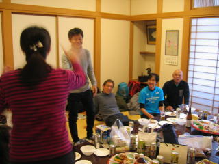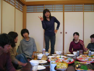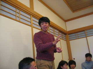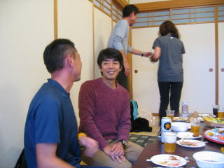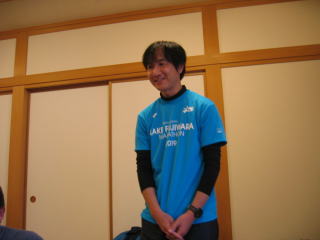 川上さんの説明、お昼12時頃まで好きな距離だけ走って、お風呂に入って汗を流し、午後1時から忘年会です。