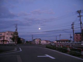 午前5時過ぎの西の空、太陽ではありません、お月さまです、まだこの頃は涼しい。