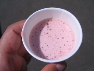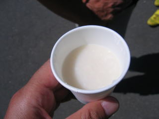 ゴール付近で甘酒とプロテインのサービスをしていました。