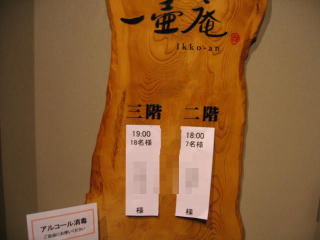 三階は18名様の様です、私どもは18:00から7名です、会費は5.300円で2時間飲み放題です。