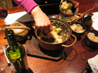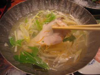 野菜を入れてから再度沸騰させ、ブリをしゃぶしゃぶとしていただきます。