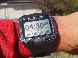 ここまでマイガーミンでは32.85キロ、4時間30分でした。