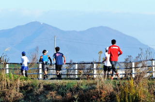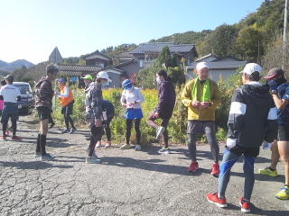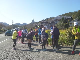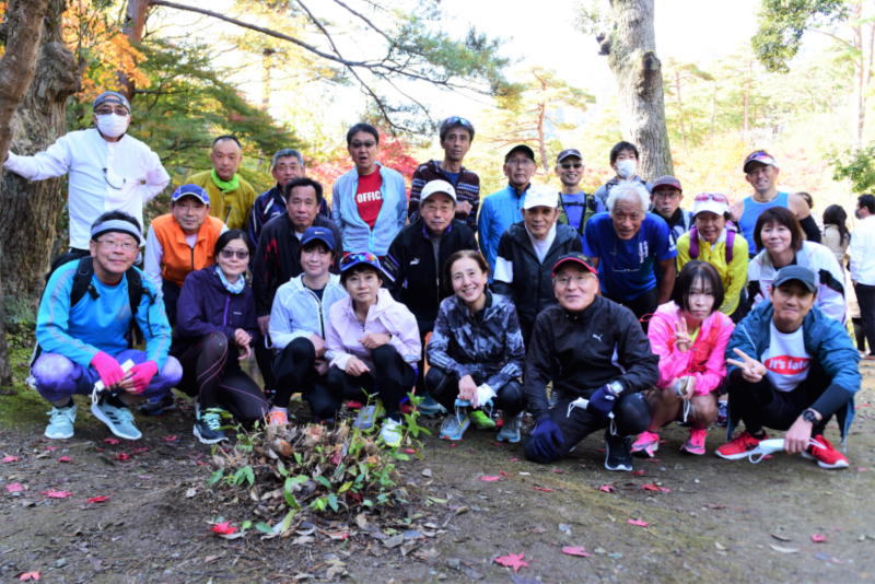 33キロ走ってゴール後の弥彦紅葉谷での集合写真です。