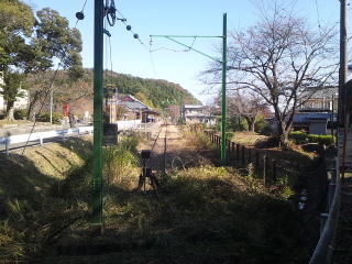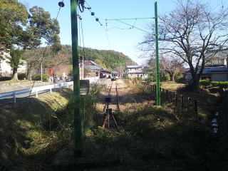 弥彦駅を見ながらもみじ公園まで歩きます。