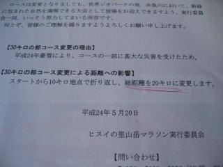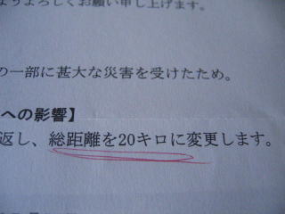 事前に「30キロの部コース変更の理由」や「距離への影響」などを記載した書面が届きました。