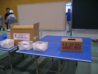 ゴールするとカードをくれ、それに自分のナンバーカード番号を書いて入れる抽選箱です。
