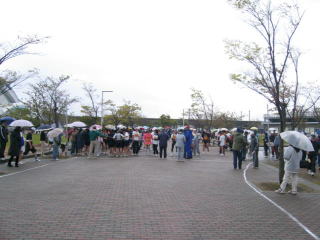 昨年も一昨年も開会式の頃まで雨が降っていましたが、スタートの頃には止んだように思います。