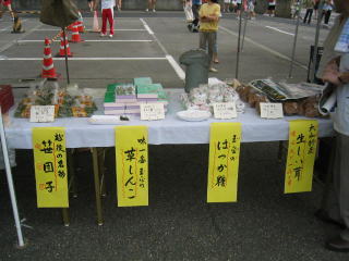 大和特産生しい茸、越後の名物笹団子、お目当ての八色西瓜なども販売しています。