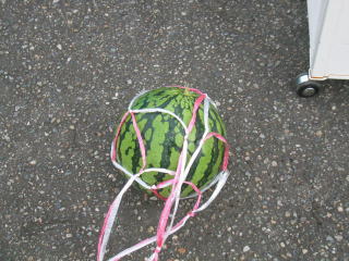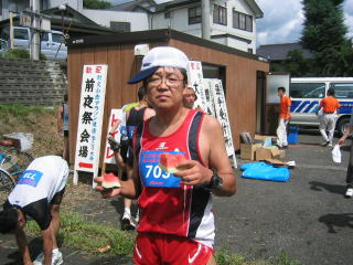 約2時間5分後、ゴールしました、太陽の光が眩しいのしょぼい顔をしています、決してスイカがまずいわけではありません。