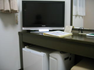 狭い部屋ですが、テレビ、冷蔵庫、使いませんが加湿器もあります。