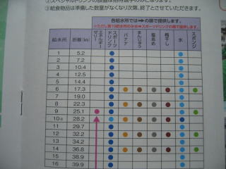 給水所は全部で16ヶ所、25.1キロ「ホワイトリング」前では「アミノバイタル」が支給されます。