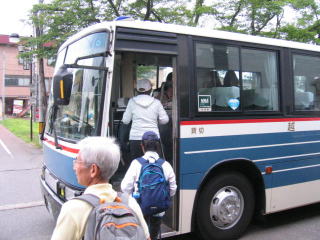 越後川口駅前にはバスが待っています、午前8時出発で無料です。