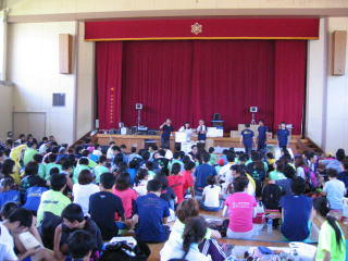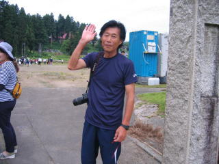 会場は旧川井小学校、校門の右に諏訪部さん、左にナンバーカードを付けた仮面ライダー?が待っていました。