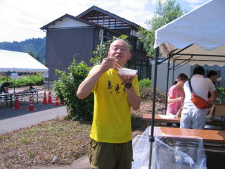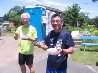 丸山さん、今年も抽選会用ナンバーカードを預かり、とん汁をいただきました。