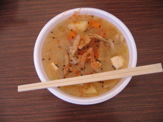 とん汁2杯目、疲れた体にはしょっぱい味噌スープが美味しい。