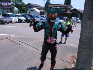 仮面ライダーもゴール、ひときわ暑そうです。