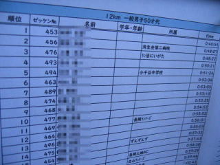 12キロ男子50歳代優勝の黒豹さんのタイムは46分54秒です。